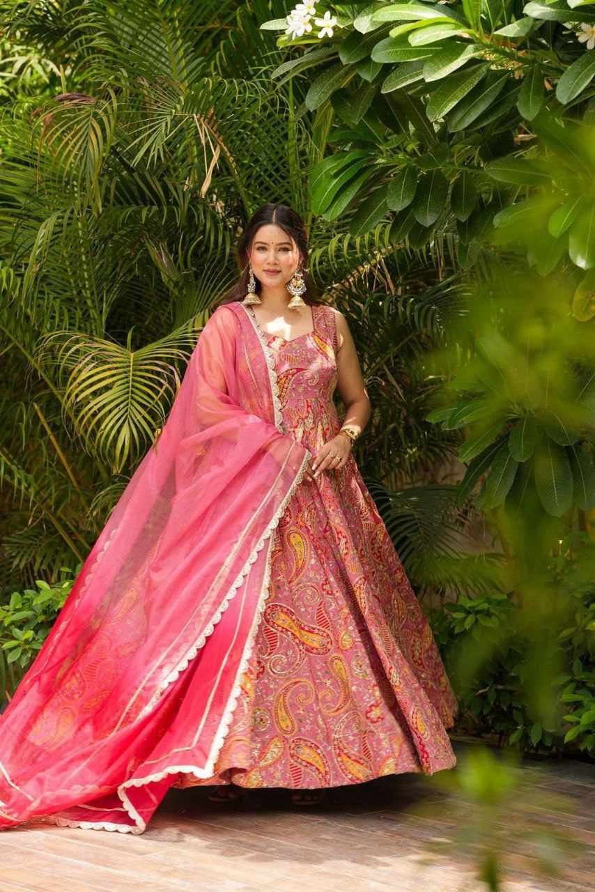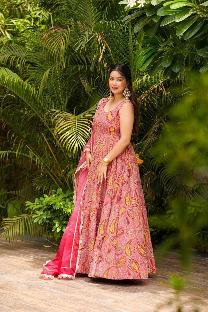 Anarkali Gown – Digital printed Jimmy Organza silk suit with a huge, elegant flair