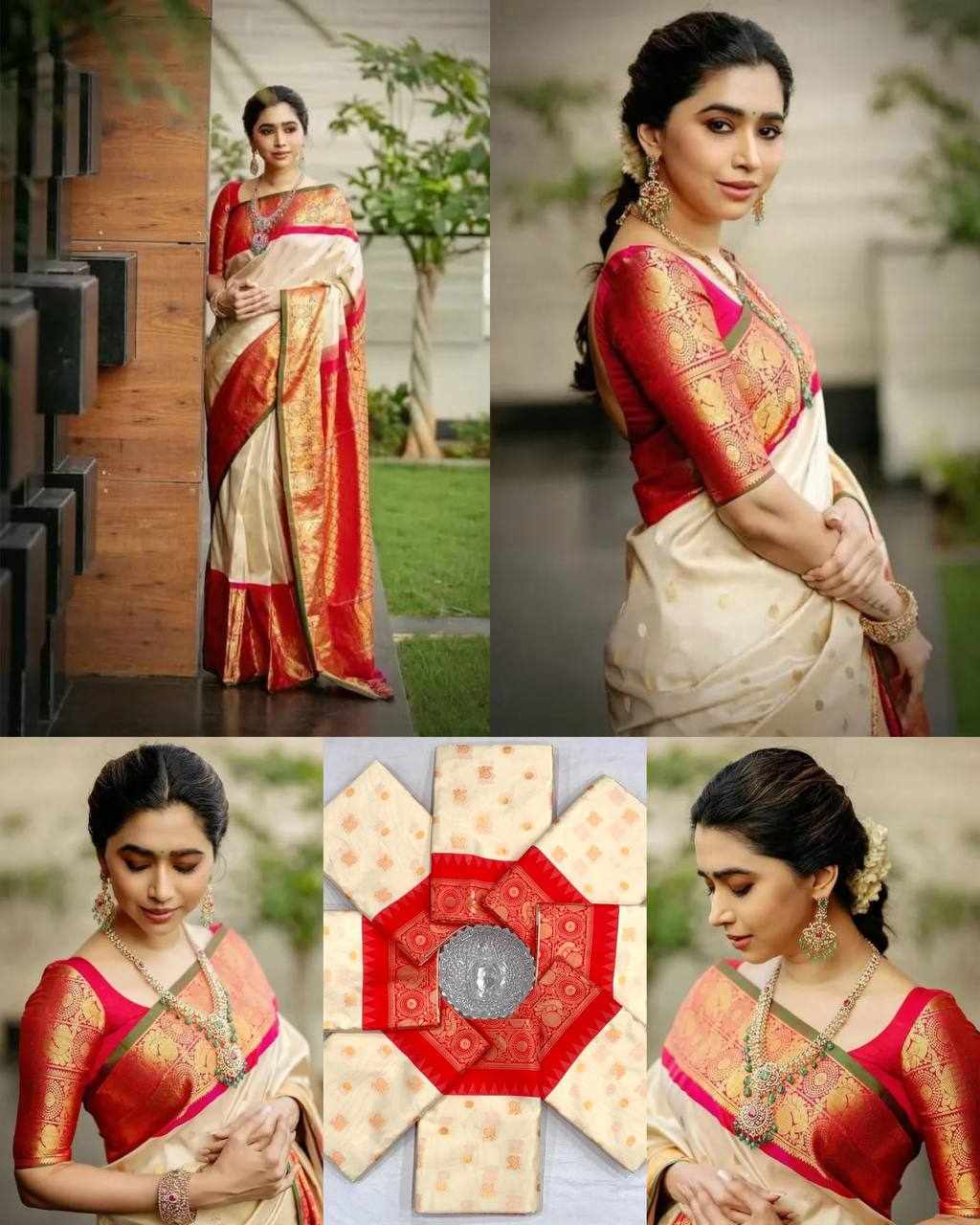 Design: Beautiful rich pallu with exquisite jacquard work woven all over the saree, giving a graceful and luxurious look