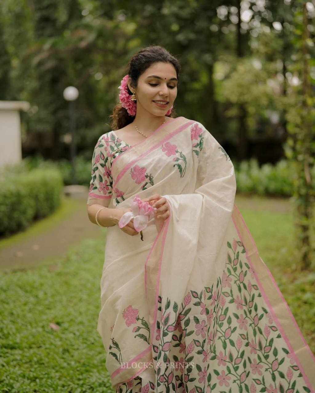 Blouse Fabric: Linen Cotton with matching digital print (same as model wear)