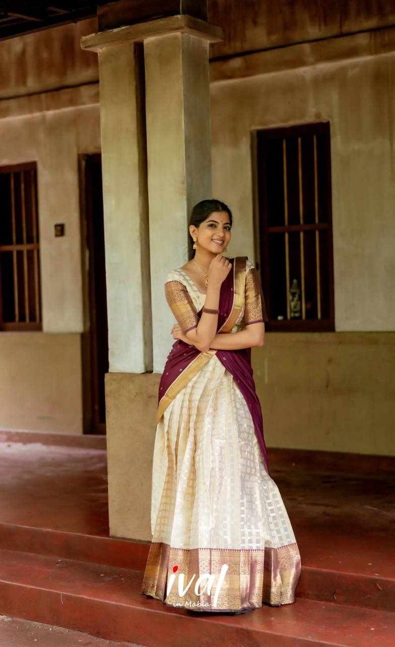 KP-W 352 Kanjiveram Silk Maroon Colour Half Saree