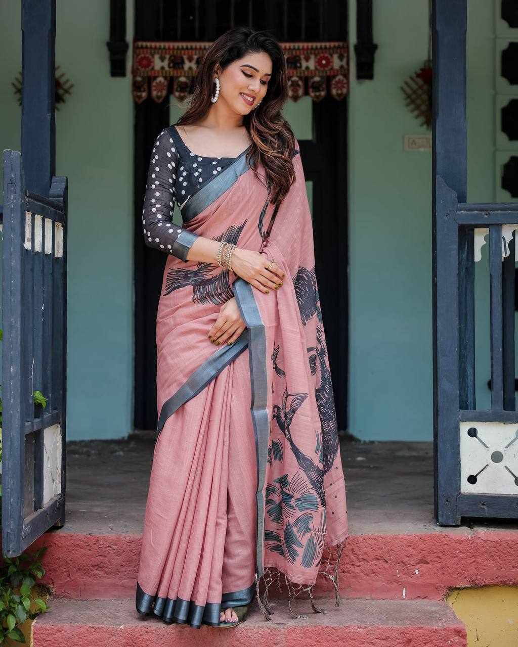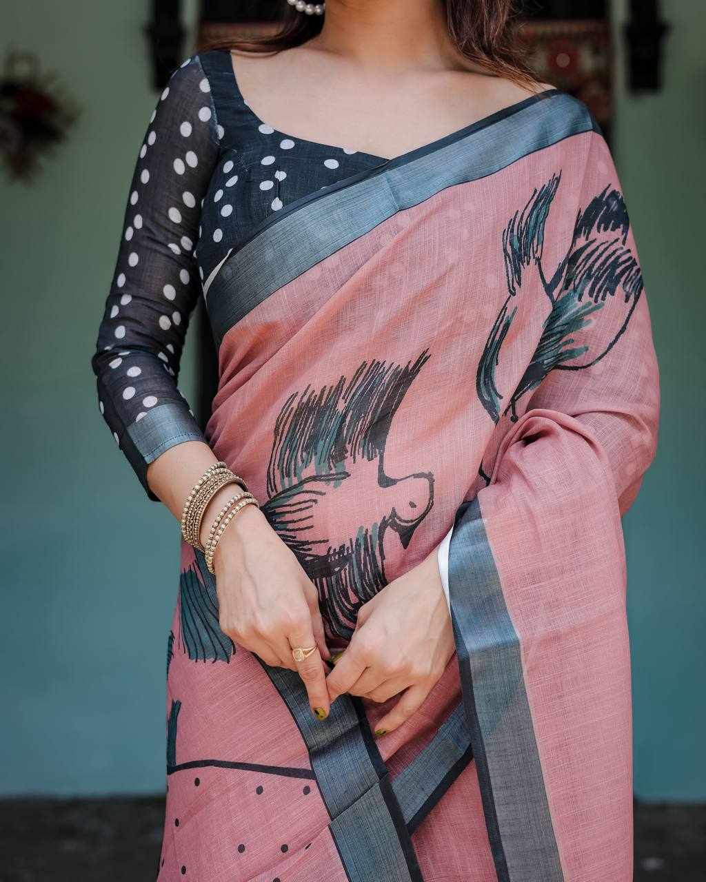 Saree Fabric: Silver Weaving Patta Linen Cotton