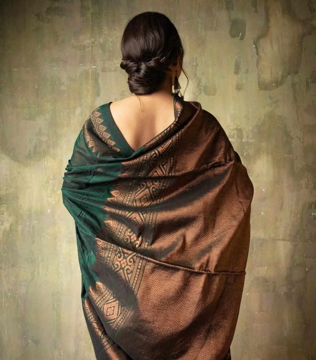 | Name : | MF 1950 GREEN BANARASI SOFT LICHI SILK SAREE |