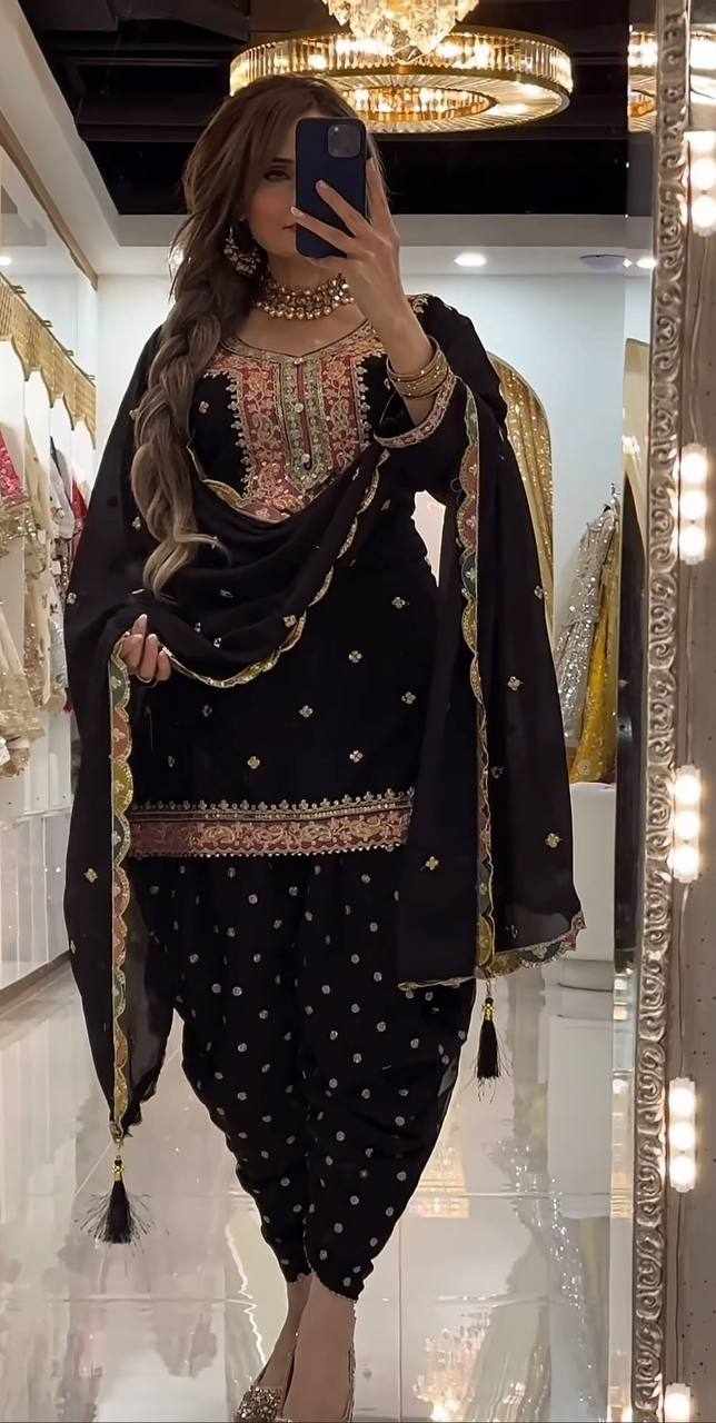 Step into elegance with this stunning Blooming Heavy Faux Georgette Dhoti Salwar Set, beautifully crafted with heavy embroidery sequence work and full sleeves. Perfect for festive occasions, weddings, parties, and traditional functions.