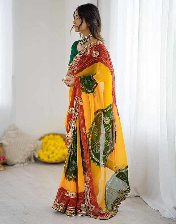 | Name : | PIYU P1030 mor bandhani Yellow-Green Saree |