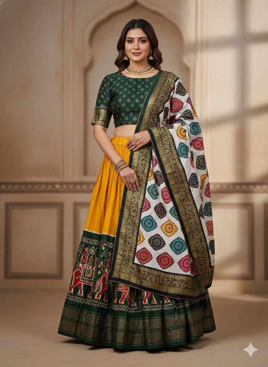 | Name : | PIYU 31-1 Silk Chaniya Choli With Viving Foil Yellow Lehnga |