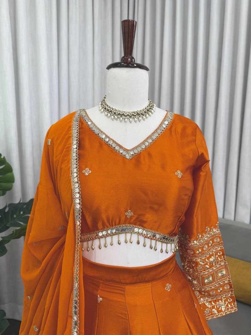 Turn heads at every celebration with this elegant Japan Satin Lehenga Choli Set, beautifully designed with detailed thread and sequence work. Perfect for weddings, receptions, festive functions, and special occasions.
